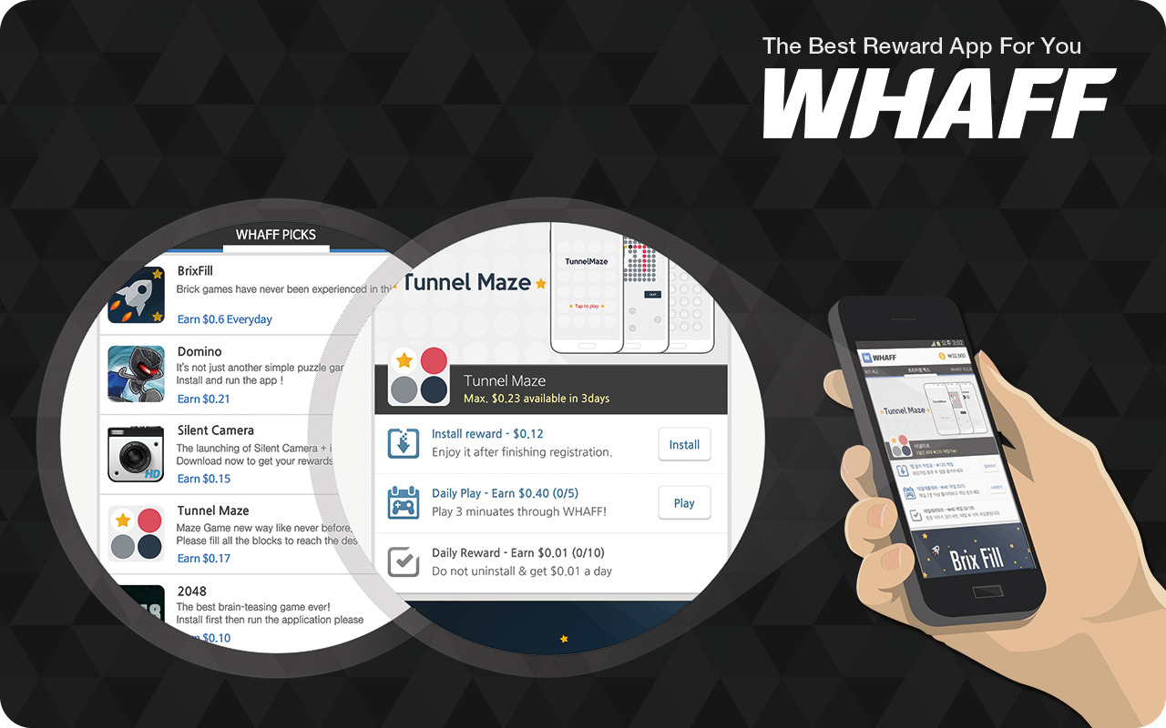 WHAFF Rewards akan membiarkan sobat menelusuri Aplikasi-aplikasi yang disponsori Hand Picked dengan WHAFF dan memberikan sobat imbalan setiap kali menyelesaikan tawaran.